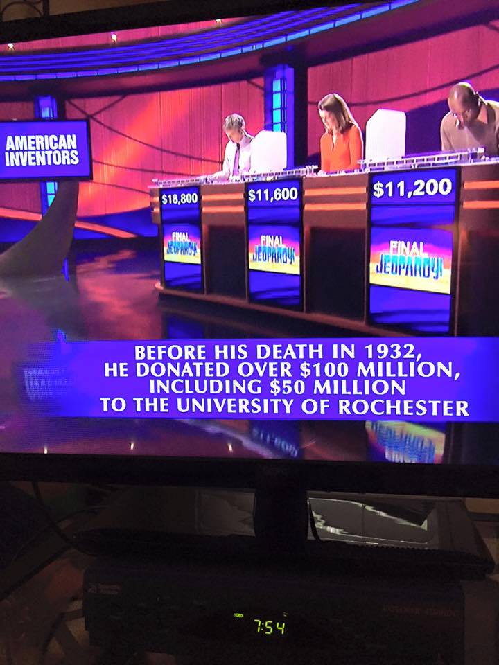 #ICYMI (I did), Apparently #ROC & @UofR got a little love on @Jeopardy on Monday night. #WhoIsGeorgeEastman?pic.twitter.com/eBLvFSPf6a