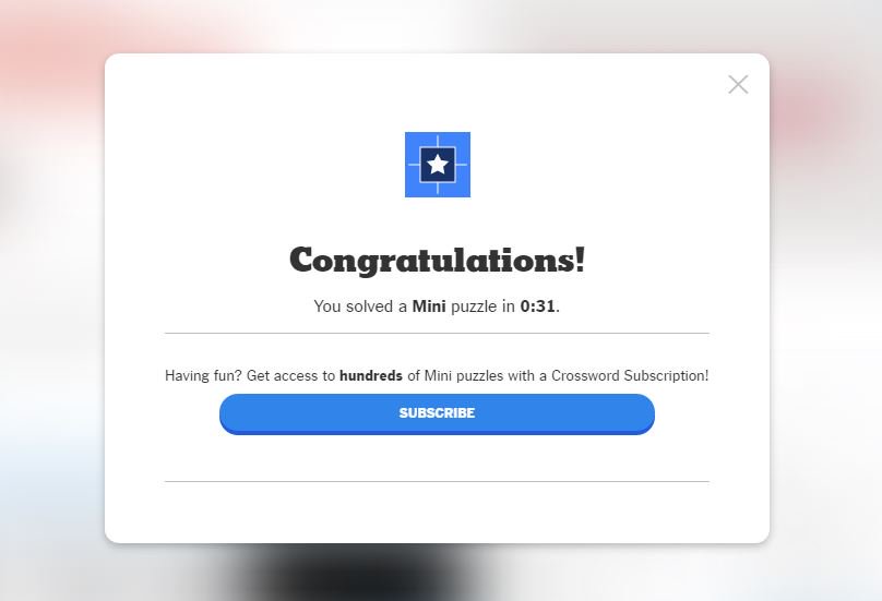 My 31st birthday gift to myself is nailing @nytimes mini-crossword 1 second shy of my goal. 31 years, 31 seconds.pic.twitter.com/vMPkezLfQN