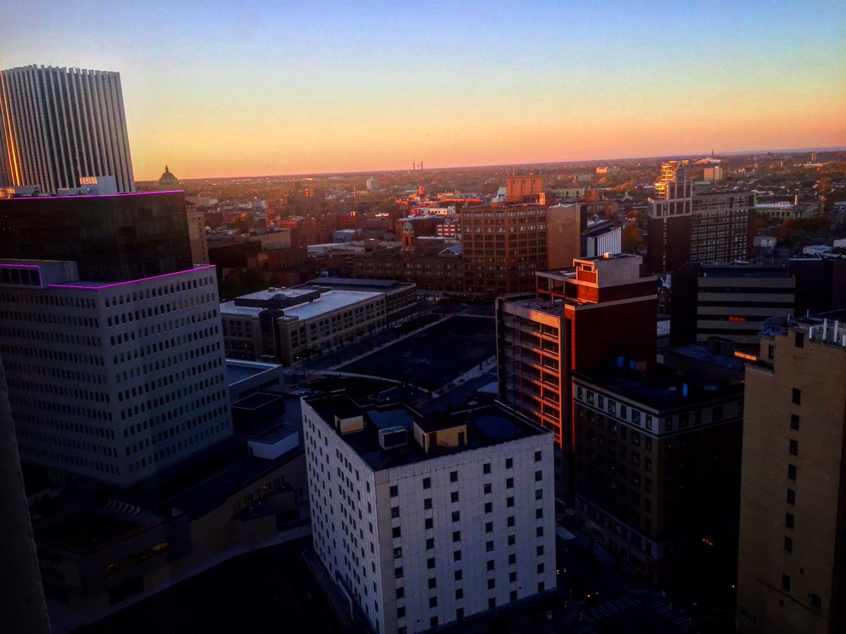 Extra lovely sunset closing out the day in #ROC, as viewed from @GRERochesterBiz's perch on the 19th floor.pic.twitter.com/65mFd26wDz