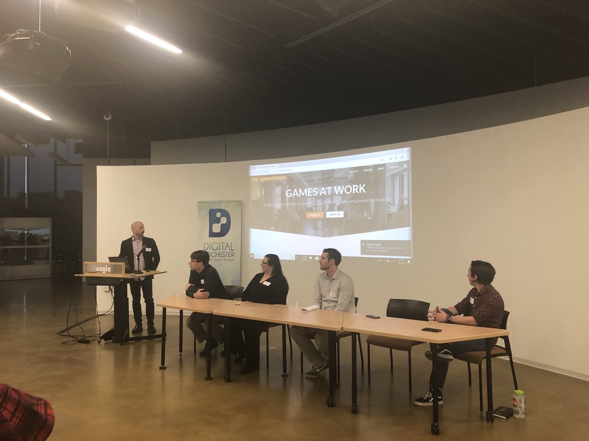 At @WorkinmanGaming, Jason Arena & @WorkinKeith & team specialize in interactive experiences for a younger audience. Recently they’re doing lots of work with “connected toys .” Think Little Tykes kitchens with interactive screens. #GetInTheGameROC #RocGameDev