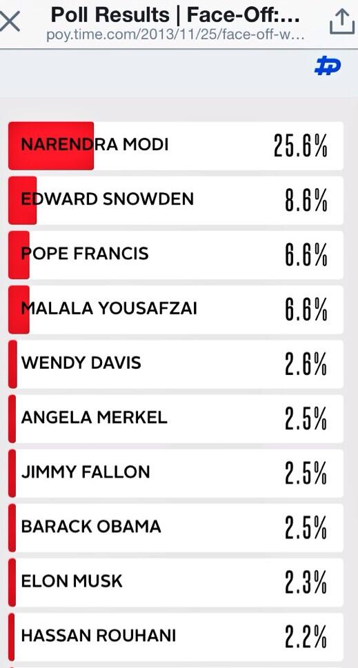 @anandibenpatel Ppl's Choice@narendramodi Leads@Time POY 2013 Poll By Wide Margin http://t.co/XGls0W35lETIME'spic.twitter.com/nNHbCYk6nV