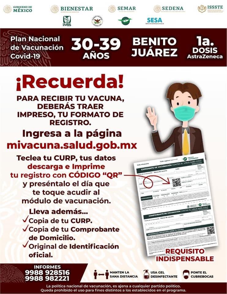 La Secretaría de Bienestar informa que el martes 29 de junio comienza la primera dosis de la vacuna AstraZeneca para adultos de 30 a 39 años de edad.pic.twitter.com/nRaUc7BFDK