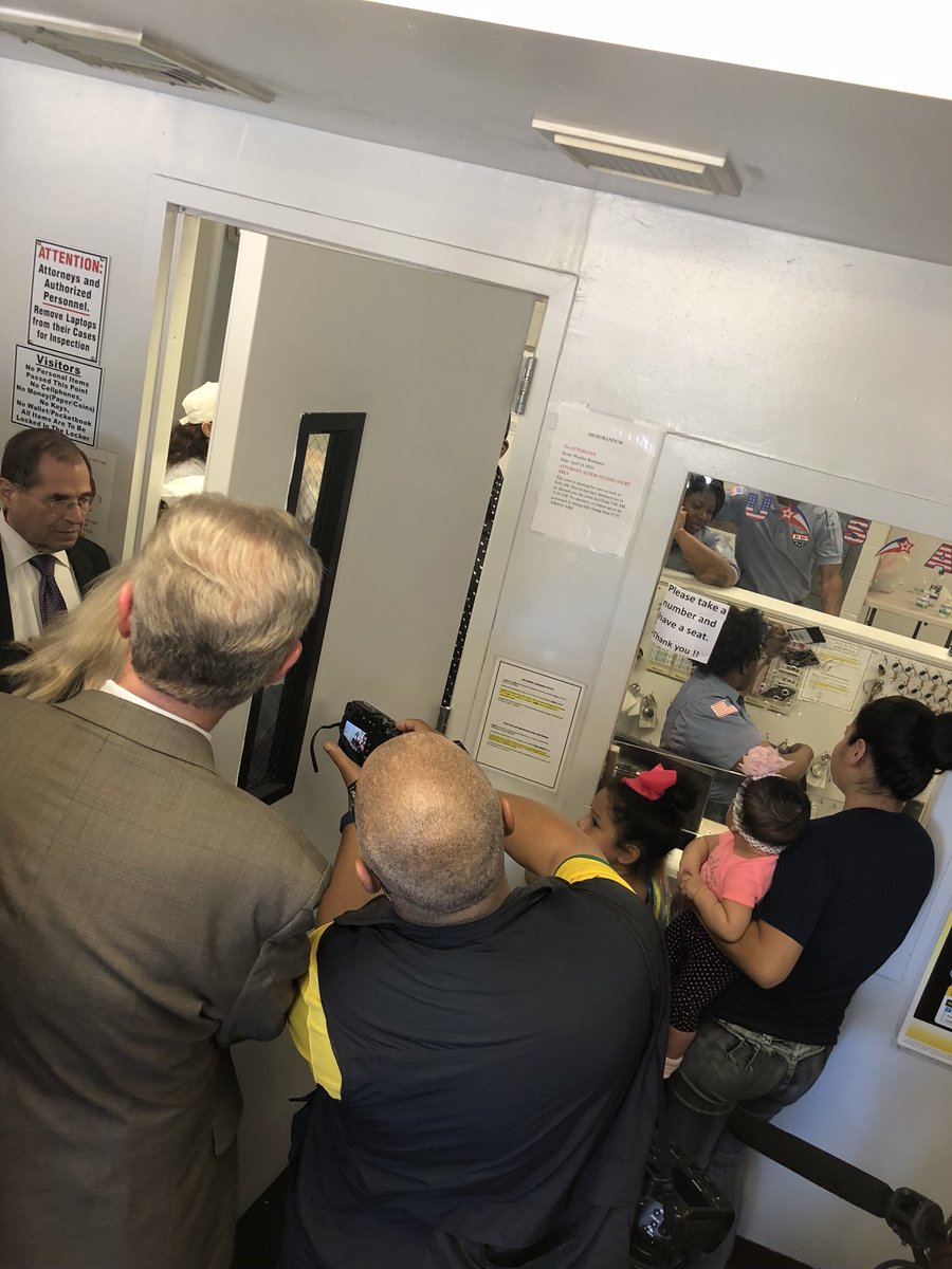 We have gotten the door open at the Elizabeth, NJ ICE detention center and refusing to let it close until we are given access to the detainees. #FamiliesBelongTogetherpic.twitter.com/pAZsEpS5g8