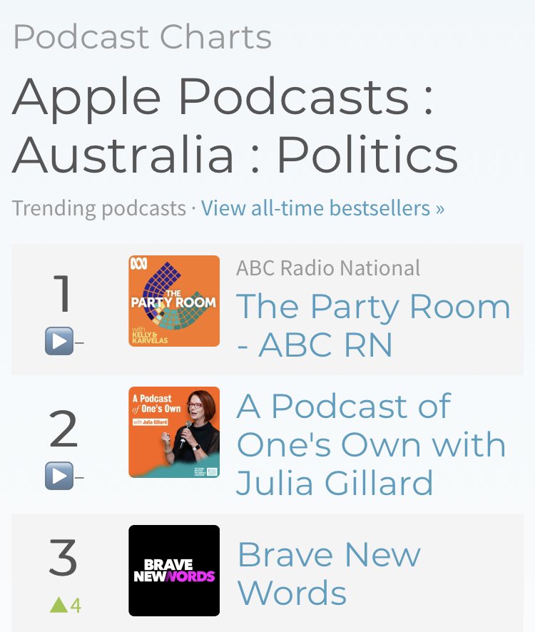 FANTASTIC! #BraveNewPod is #3 on Australia’s Apple Podcasts: Politics list! Help us reach more progressives everywhere. RETWEET and SUBSCRIBE: http://bravenewwordspod.com/#subscribe  pic.twitter.com/iSlKv77vJt