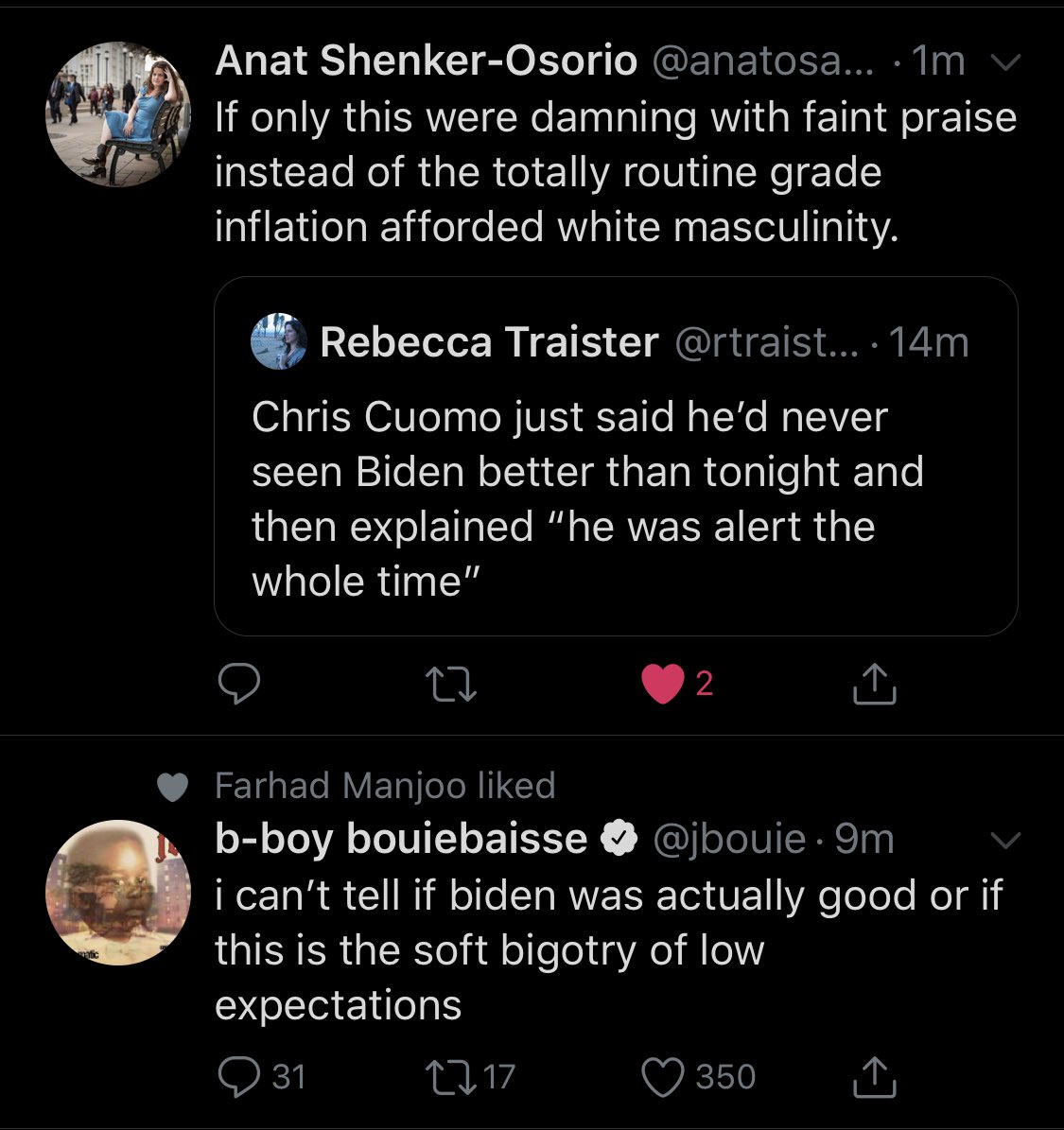 If only this were damning with faint praise instead of the totally routine grade inflation afforded white masculinity.https://twitter.com/rtraister/status/1207868399990251523 …
