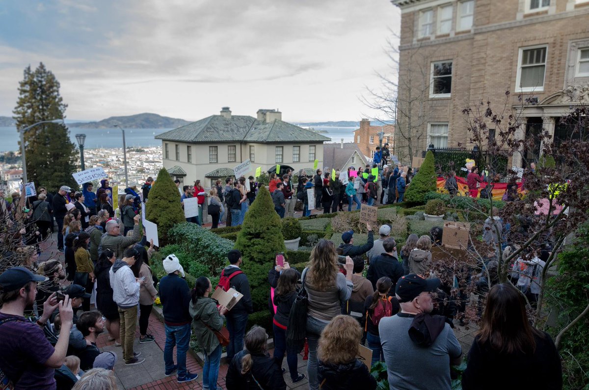 200 demonstrators descended on @SenFeinstein’s house to protest her support for Trump’s nominees: http://www.modernluxury.com/san-francisco/story/200-demonstrators-descended-dianne-feinsteins-house-protest-her-support-trumps-n … pic.twitter.com/UWpmsjNmpN