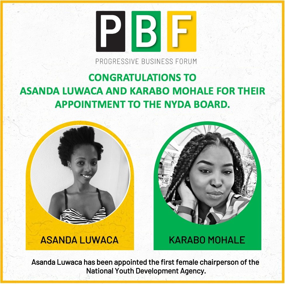 The Progressive Business Forum wishes to congratulate Asanda Luwaca and Karabo Mohale for their appointment to lead