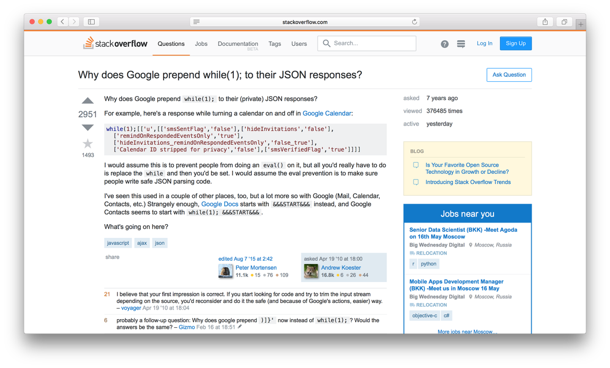Зачем Google добавляет while(1); к JSON-ответам API — http://amp.gs/tKGm pic.twitter.com/xqo0kWvLaP