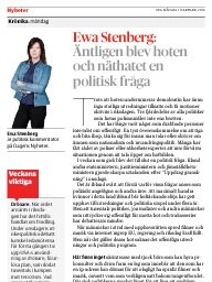 "Måndagskrönikan - Ewa Stenberg: Äntligen blev hoten och näthatet en politisk fråga". #svpolpic.twitter.com/HZW45vHg