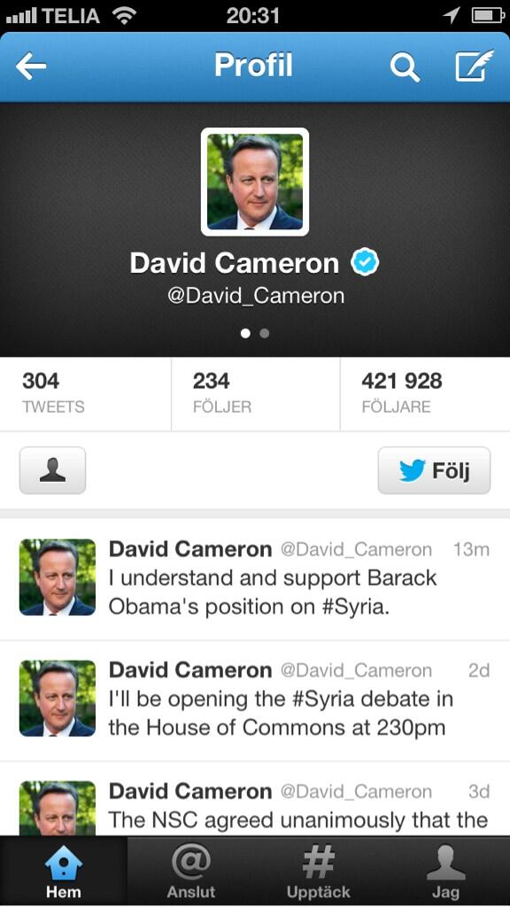 Om man läser de två senaste tweeten från @David_Cameron undrar man om det är ett bra omen för Obamapic.twitter.com/ELhKar6Lrr