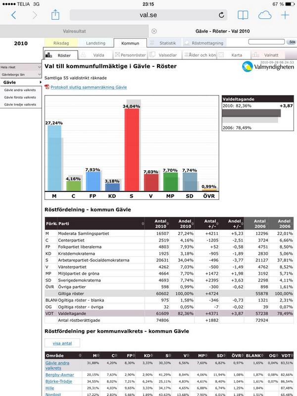 @anderslindberg @CarlssonJhannes Alliansen fick fler röster än s och v i valet 2010 i Gävle.