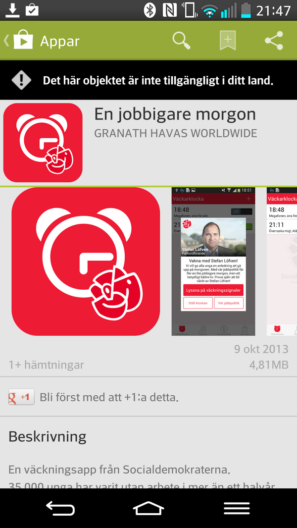 Stockholm är inte heller i rätt land för S väckningsapp