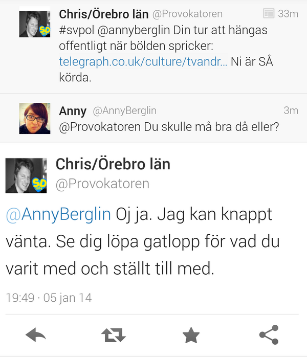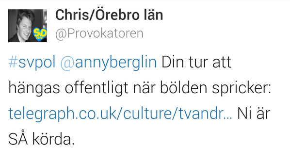 @anderslindberg och@AnnyBerglin, det är otvetydigt#hot som jag tycker ni ska polisanmäla. Anny vet vem han är.