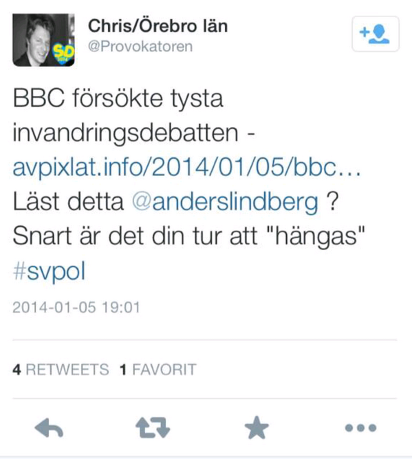 @anderslindberg@EvaHillen Jag kommer göra en polisanmälan. -
