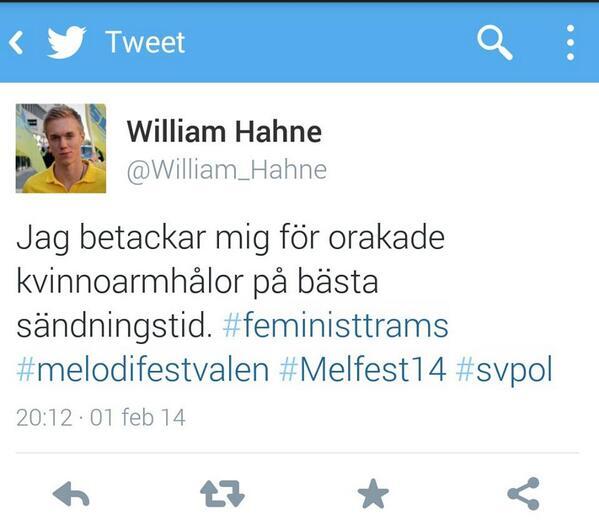 Även SD twittrar om #Melfest14, dock inte om låtarna. Vidrigt.pic.twitter.com/1mfx0qOKUY