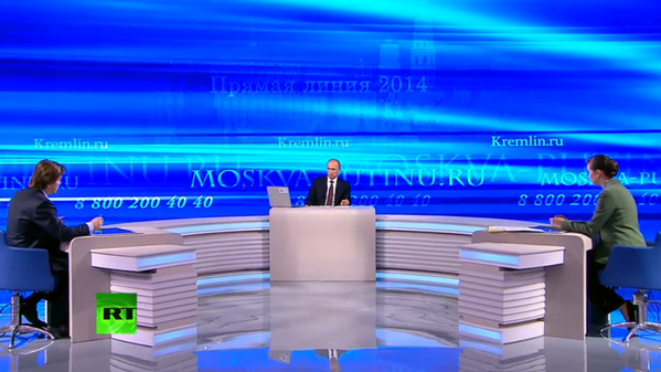 JUST IN: Vladimir Putin's 'marathon' Q&A kicks off. WATCH LIVE http://on.rt.com/1m7tdl pic.twitter.com/xb5465cCRJ