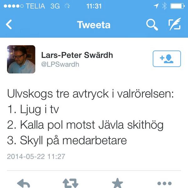 @LPSwardh. "@anderslindberg Tre dagar till valet och M pratar nästan bara om Ulvskog istället för sin politik. pic.twitter.com/daPVe61ZaL"