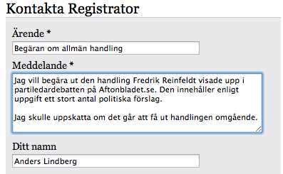 @anderslindberg: Jag har nu begärt ut Fredrik Reinfeldts lista med politiska förslag från Regeringskansliet."S vill läsa om ett bättre SV.Thanks. Twitter will use this to make your timeline better. UndoUndo