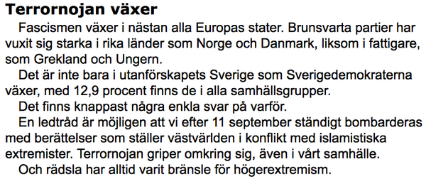 @erikalmqvist@arnstad Då har du läst slarvigt. Låt mig citera: "Fascismen växer i nästan alla Europas stater. Brunsvarta partier har vuxit" -