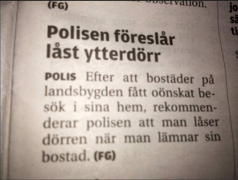 Relaterar. Vi började låsa dörren när jag gick i 7an och grannarna hade inbrott. “@anderslindberg: Livet på landet pic.twitter.com/3sCgNwKTLW”