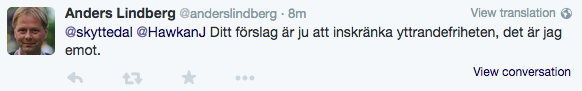 @anderslindberg Är du även mot hetslagstiftningen? Samma typ av inskränkning.@HawkanJ -