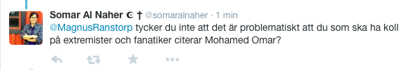 @anderslindberg När@Gravdyrkare Mohamed Omar var islamist var han etablissemangets gullegris. Nu är han tydligen "höger". MärkligtThanks. Twitter will use this to make your timeline better. UndoUndo