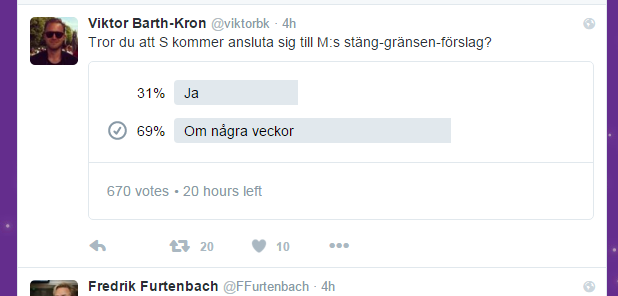 @anderslindberg@margitsilber 30 dagars gränskontroll kan vi sätta upp tills vi hittat ett sätt att stävja antalet.#migpolThanks. Twitter will use this to make your timeline better. UndoUndo
