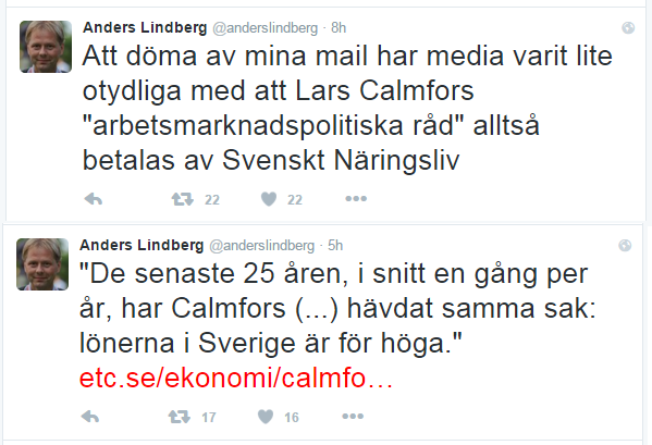 Lite svårt att hävda att Calmfors både är mutad av näringslivet och har tyckt samma sak i 25 år?pic.twitter.com/qKlb4rt9Yq