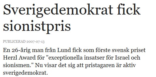 Inte olik Israels heller som de dessutom belönats med pris från: http://www.dn.se/nyheter/sverigedemokrat-fick-sionistpris/ …pic.twitter.com/poIL689Cnh