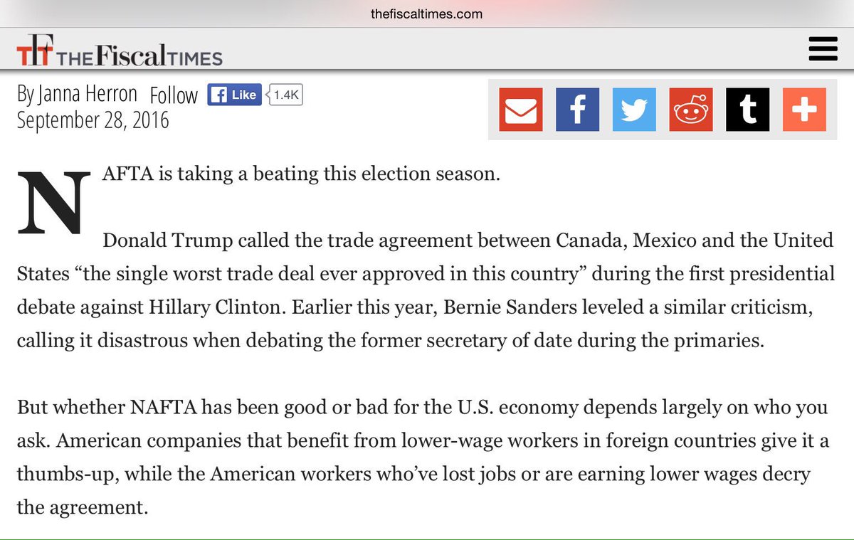 Okej, visst. Här är tre exempel på varför frihandelsavtalet Nafta missgynnar USA (till förmån för multinationella bolag).pic.twitter.com/iCRyoatZwR