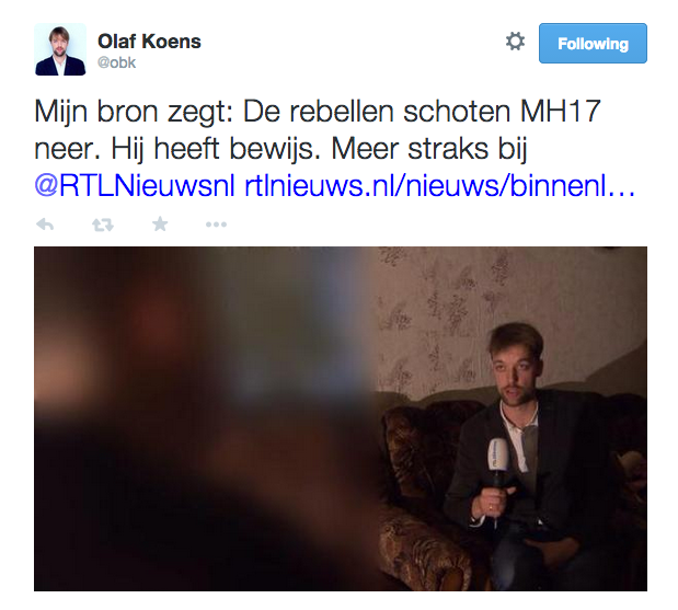 My source says: The rebels shot down MH17. He has proof. More soon at @RTLNieuwsnl - @obk.pic.twitter.com/pG1dPB5zWp
