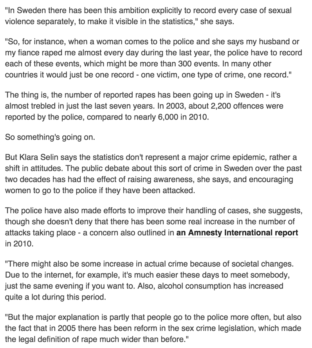 Swedish women are not under daily risk of rape but ambition is to record every single rape. http://www.bbc.com/news/magazine-19592372 …pic.twitter.com/ifkrq83Uun