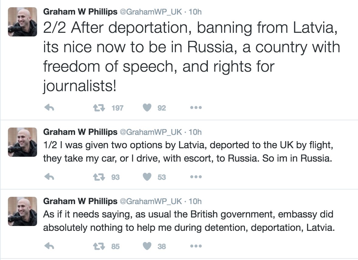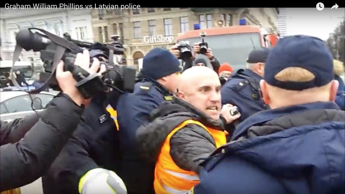 Graham Phillips in Riga: Provokes, laughed at, arrested, deported, banned for three years. https://youtu.be/RTzVXCGQ0TM pic.twitter.com/ulHxz2VQX5