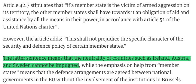 Article 42.7 stipulates that the neutrality of countries such as Ireland, Austria, and Sweden cannot be impugnedpic.twitter.com/BELg59SmGB