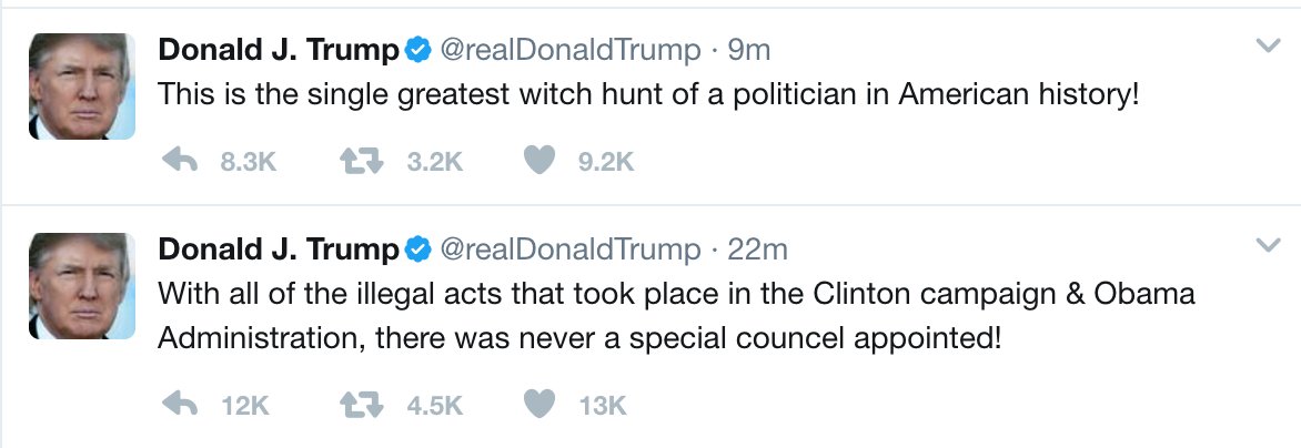 So why should there be a special counsel for MY illegal acts? Not fair!