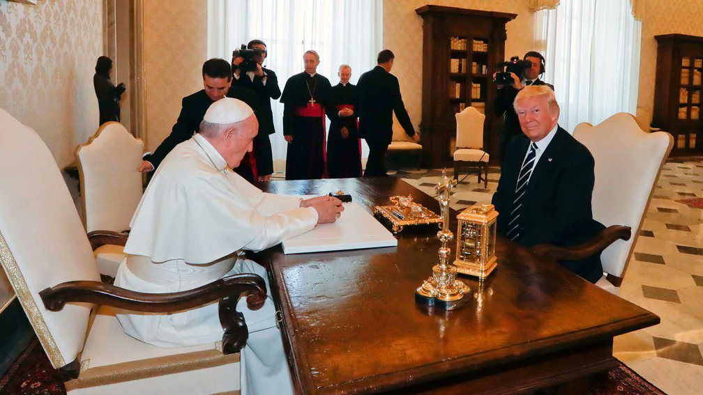Normally photo ops of leaders have both people shown in equal position. Did Pope intentionally show Trump in inferior position?
