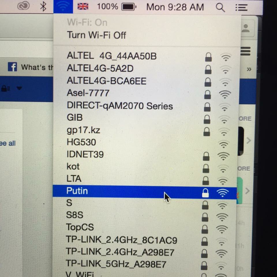 Random list of WiFi networks that popped up in Almaty