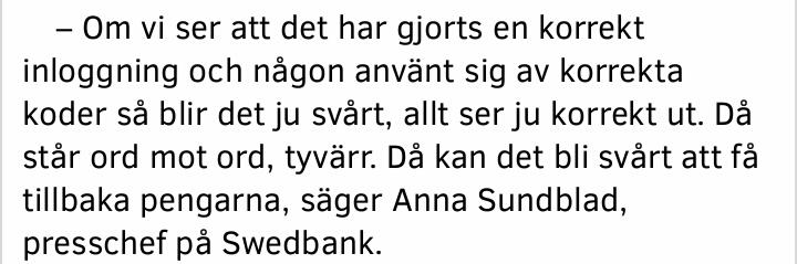 Ang. texten i bilden (från Aftonbladet ang. bedrägeri), det är svårt att logga in med felaktiga uppgifter, @Swedbank.pic.twitter.com/FfB1ODJVe2