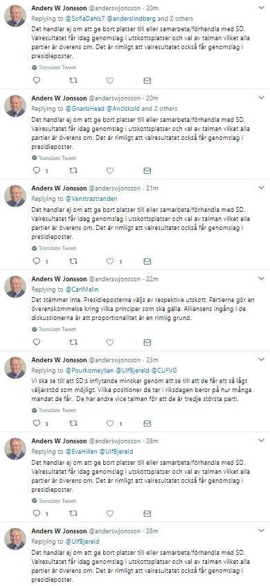 ALLA kan alltså se att du sitter och spammar folk och mitt genuina råd till dig är att en riksdagsledamot inte bör bete sig som ett skräppostkonto om man vill bibehålla någon sorts trovärdighet, speciellt då det bryter mot Twitters regler och du kan få ditt konto avstängt.pic.twitter.com/GauP8MLmaN