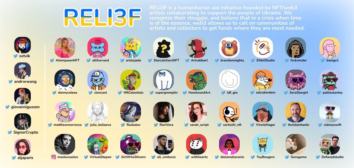 We recognize the Ukrainian people's struggle. In a crisis where time is of the essence, web3 allows us to collaborate with artists + collectors to get funds where they are most needed. And because of the blockchain, we can provide full transparency.