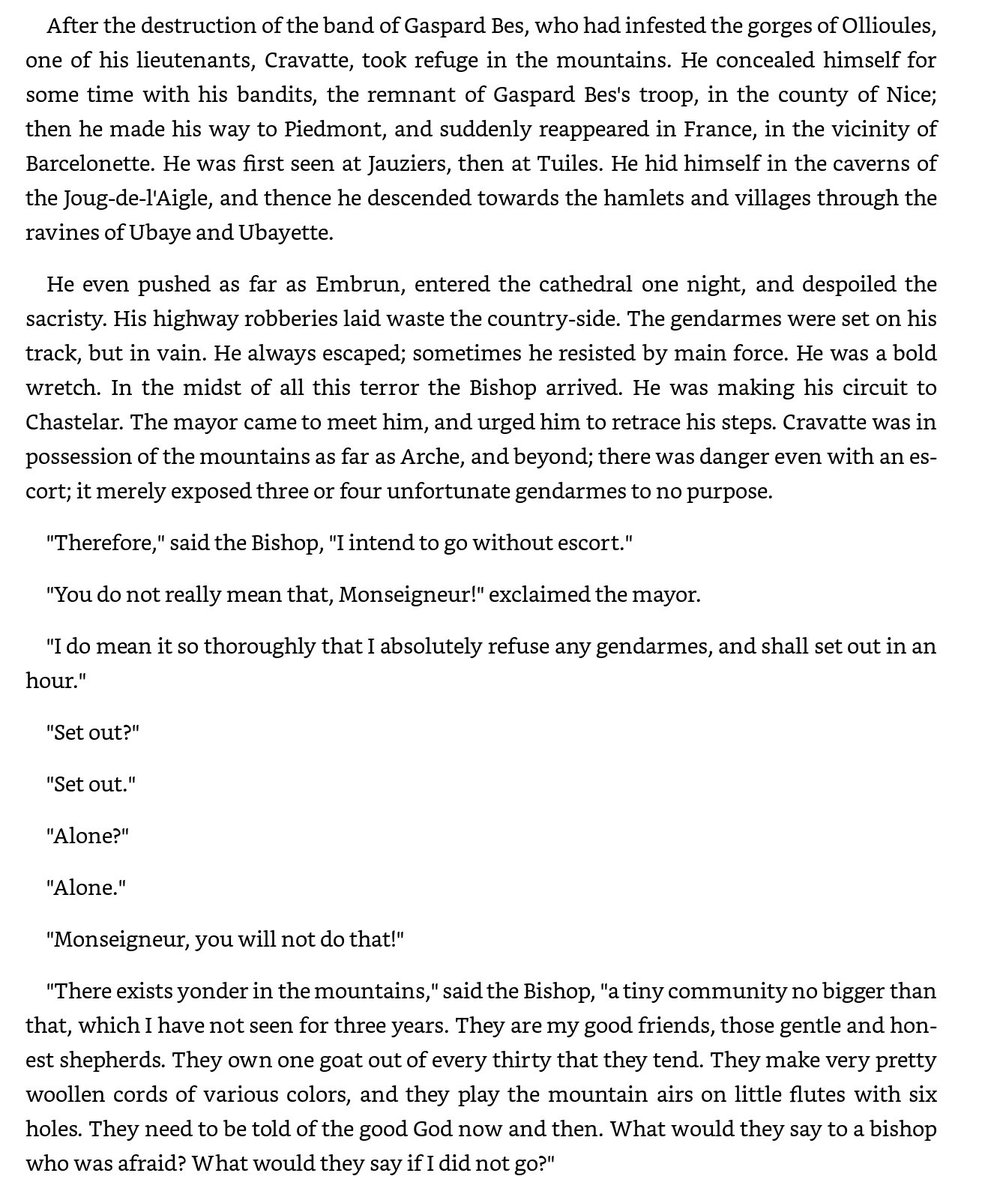 That said, I loved the setup of the story for how evocative of early 1800s France it was. One bandit can threaten an entire region! Desperate grinding poverty! Rural traditions! All this needs is a bit of cagotry and some bellringing in thunderstorms and the vision is complete.pic.twitter.com/GL06Brkt7c