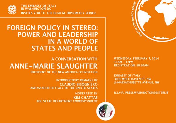@LanceUlanoff @lorenzoFB @riotta You're invited to #digitaldiplomacy series w Anne-Marie Slaughter at @ITALYinUS Feb5pic.twitter.com/e80xa3dmVO