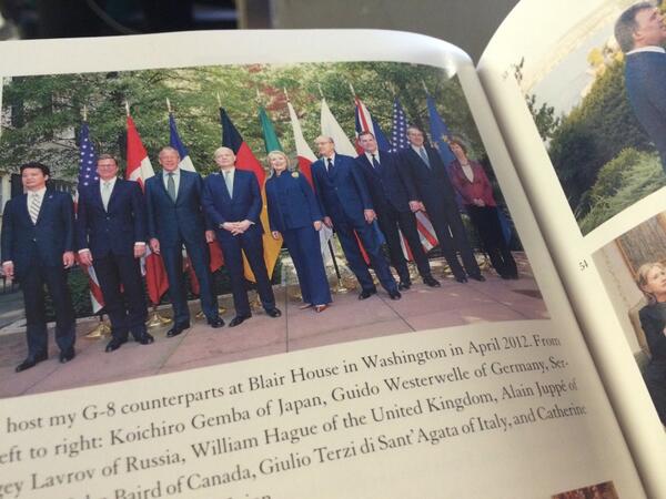 Reading @HillaryClinton's Hard Choices memoir... Pic of G8 meeting at Blair House w/FM @GiulioTerzi (I was there too)pic.twitter.com/o3nttQEPh0