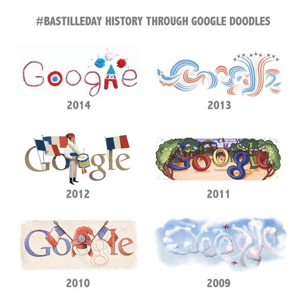 #BastilleDay history through Google Doodles #BastilleDayFacts #FeteNationale #14julliet #france #HappyBastilleDaypic.twitter.com/GIcUEZEXaa