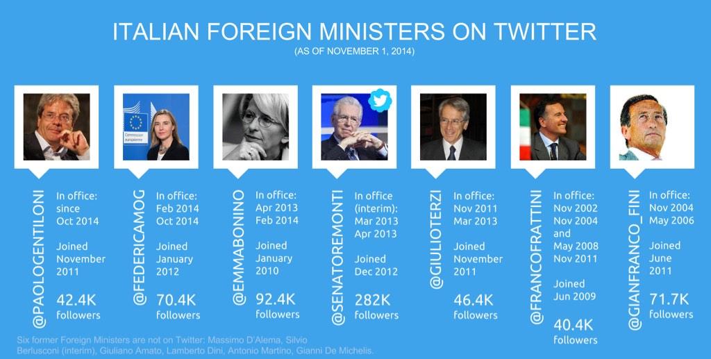 Da @PaoloGentiloni e @FedericaMog, tutti i Ministri degli Esteri su Twitter #socialmedia #digitaldiplomacy #italypic.twitter.com/JT5HsCnVnd