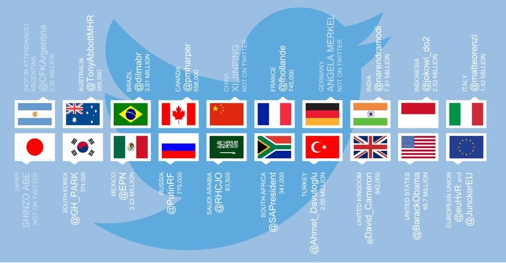 G20 Leaders on Twitter #G20Brisbane #G20 #Australia #Brisbane #digitaldiplomacy #socialmediapic.twitter.com/zYRqV67wwN