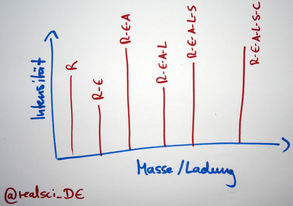 Praktischerweise ist die Wechselfrequenz proportional zu Masse und Ladung des Fragments.