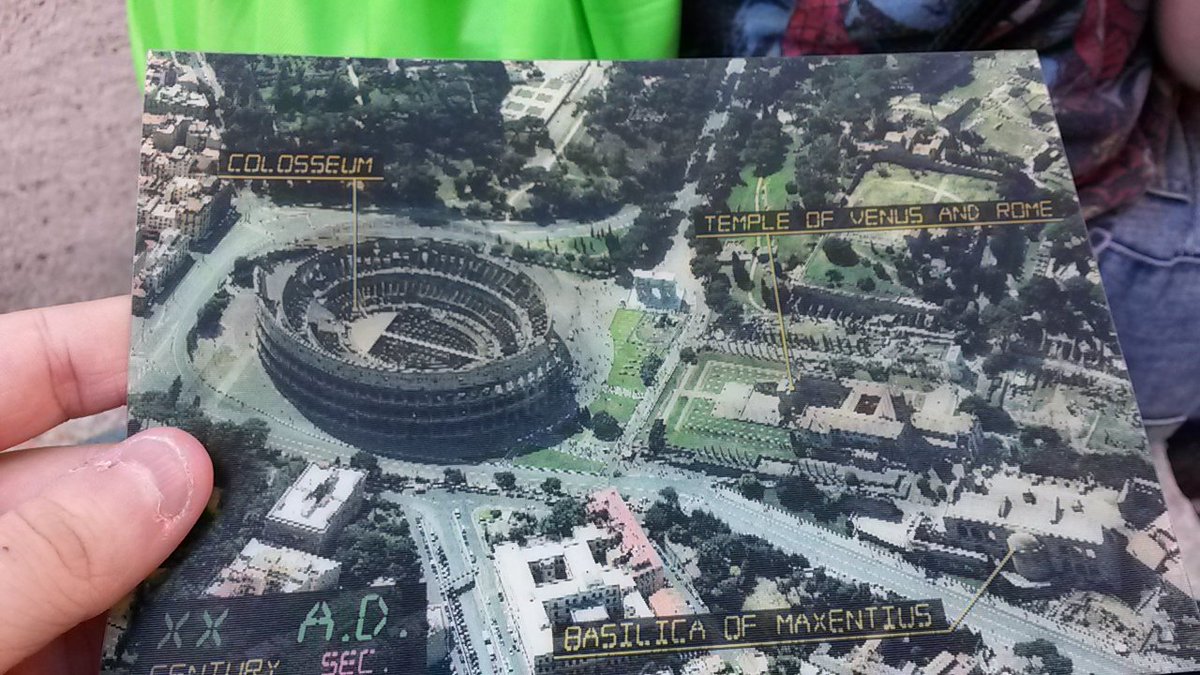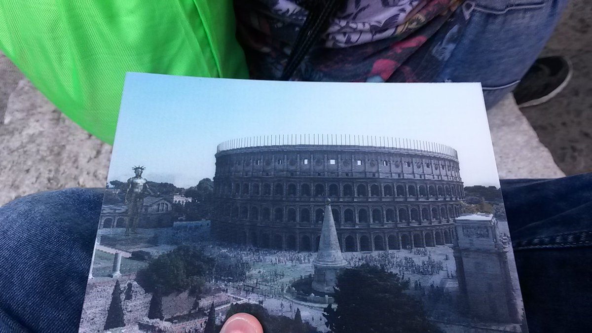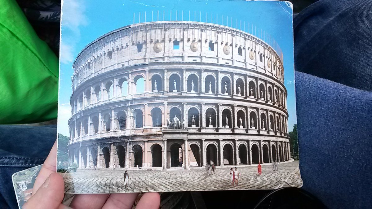 So cool, Tourguide hat so Kipp-Postkarten mit, zum zeigen wie das Kolosseum früher aussah:pic.twitter.com/m9wlksUkDf