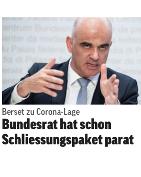 An seiner morgigen Telko wird der Bundesrat einen einwöchigen Restaurant-Lockdown beginnend ab Heiligabend verkünden.