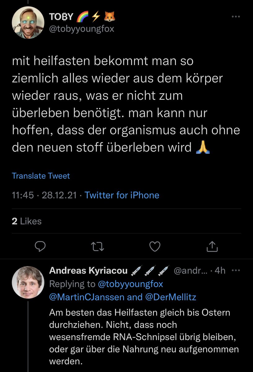 Da versucht man, die Gesundheitstipps eines Antivaxxers weiterzudenken und statt Anerkennung gibt‘s einen Block. Undankbare Welt, das.pic.twitter.com/VrLxxIjfZp